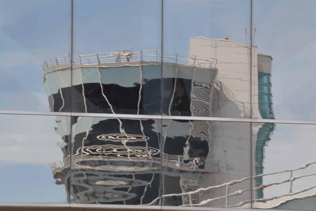 Melting Tower: The ground control tower at PHL as reflected in the bridge that links the Marriott to Terminal B. By Guillaume de Syon.