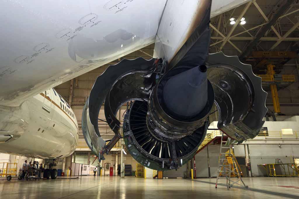 Open Wide! GEnX engine cowlings on a United Boeing 787 Dreamliner are opened for inspection while on overnight maintenance at Los Angeles International (LAX). By Ben Wang.