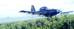 The U.S. State Dept. is flying highly modified, armored agricultural aircraft in Colombia, spraying illicit coca crops with herbicide. Eight of the two-place Air Tractor AT-802 single-engine turboprops have been built in Olney, Tex., and at least three are being flown in Colombia by contractor...