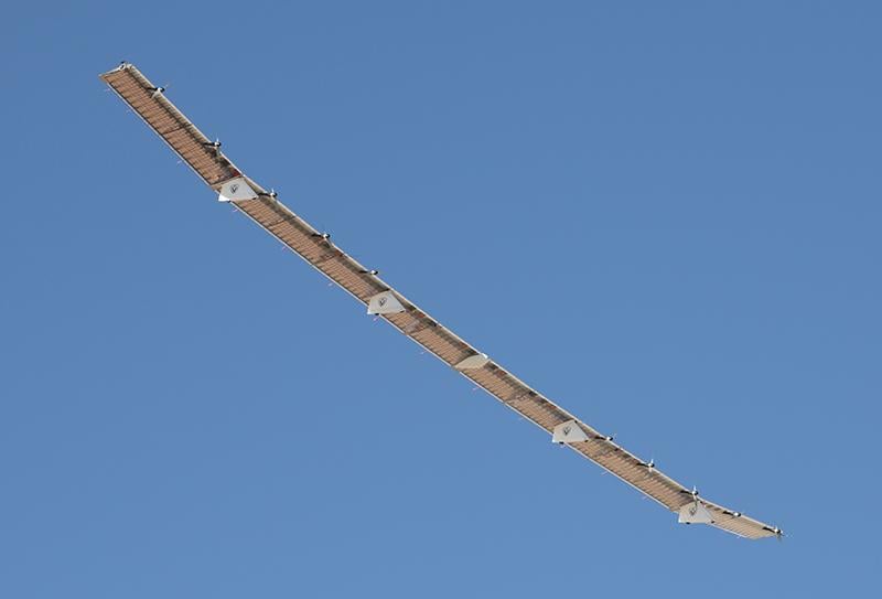 HAPSMobile, the joint venture of AeroVironment and Japan’s SoftBank, flew the prototype Hawk30 high-altitude pseudo-satellite on Sept. 11 at NASA Armstrong Flight Research Center at Edwards AFB in California. The Hawk30, a 260-ft.-span solar-powered flying wing is designed to stay aloft at 65,000 ft. for up to six months, acting as a telecommunications platform.