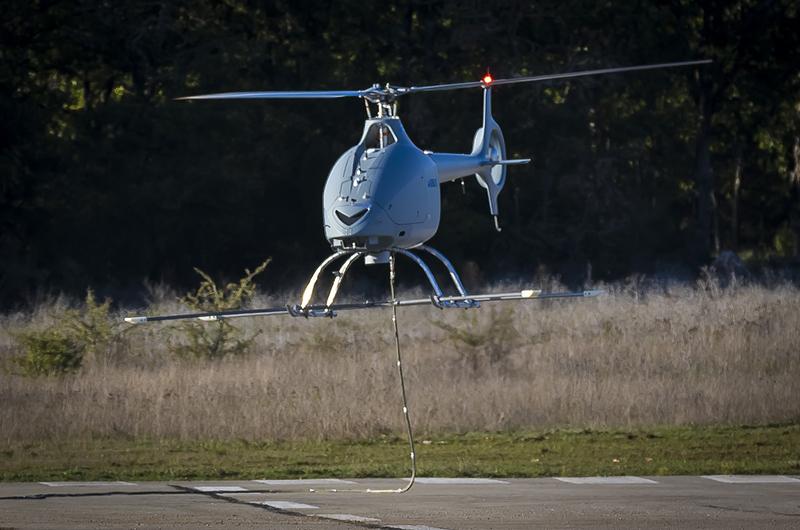 Airbus flew its VSR700 diesel-powered rotary-wing unmanned aircraft on Nov. 8 at Aix-en-Provence, France, performing several tethered takeoffs and landings. The 1,500 lb. VSR700, designed to meet a French Navy ship-based UAV requirement, is developed from the Guimbal Cabri G2 light piston helicopter.