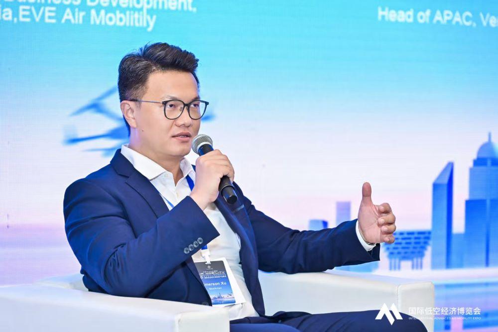 NexAvian CEO Emerson Xu speaking at the 2025 Advanced Air Mobility International Conference (AAMIC) in Shanghai on July 22.