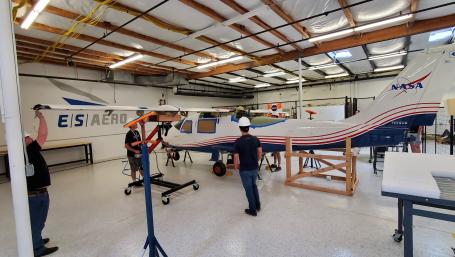 Empirical Systems Aerospace (ESAero) is conducting fit checks with an advanced wing for NASA’s X-57 electric propulsion demonstrator as the X-plane progresses toward a first flight at Armstrong Flight Research Center at Edwards AFB in California.