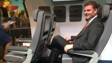 Lufthansa presented its new premium-economy class at the ITB tourism fair in Berlin.
