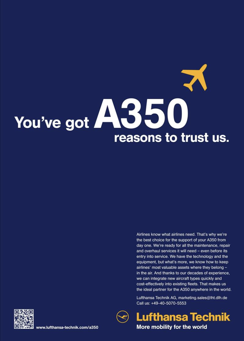 Lufthansa Technik advertises why it believes it is the perfect partner for A350 maintenance.