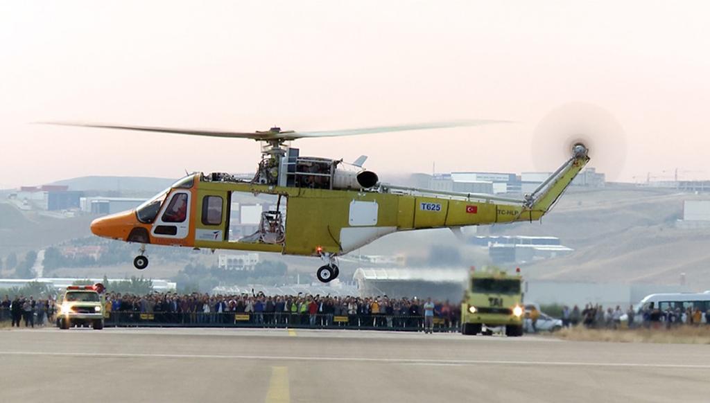 Turkish Aerospace Industries flew the prototype T625 intermediate helicopter for the first time on Sept. 6. Turkey’s first indigenously developed helicopter, the 12-seat, 6,000-kg (13,200-lb.) T625 is powered by two LHTEC CTS800 turboshafts. Certification is targeted for 2020.
