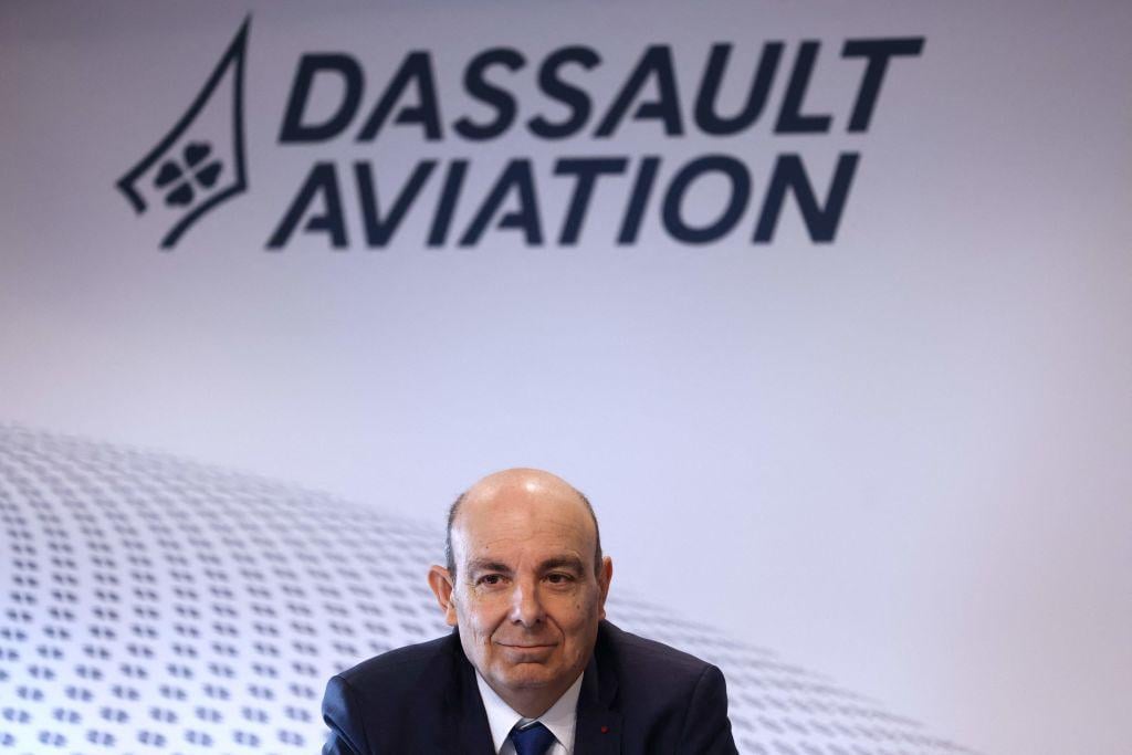 Dassault Aviation CEO Eric Trappier lays out the OEM's 2022 results in Paris on March 9, 2023.