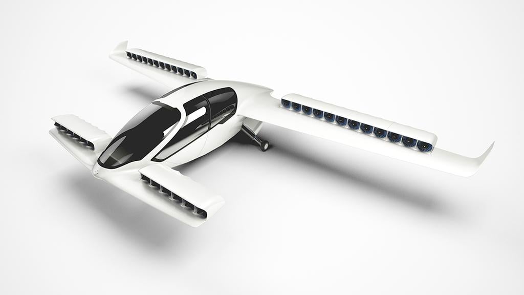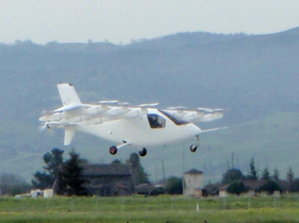 Secretive Zee.Aero, owned by Google cofounder Larry Page, is test-flying a piloted subscale prototype of its eVTOL aircraft. The Z-P1 prototype has 12 rotors for vertical lift, arranged in fore/aft pairs on the ends of six booms mounted under the wing. A pusher propeller, mounted aft of a conventional tail, provides propulsion in forward flight.