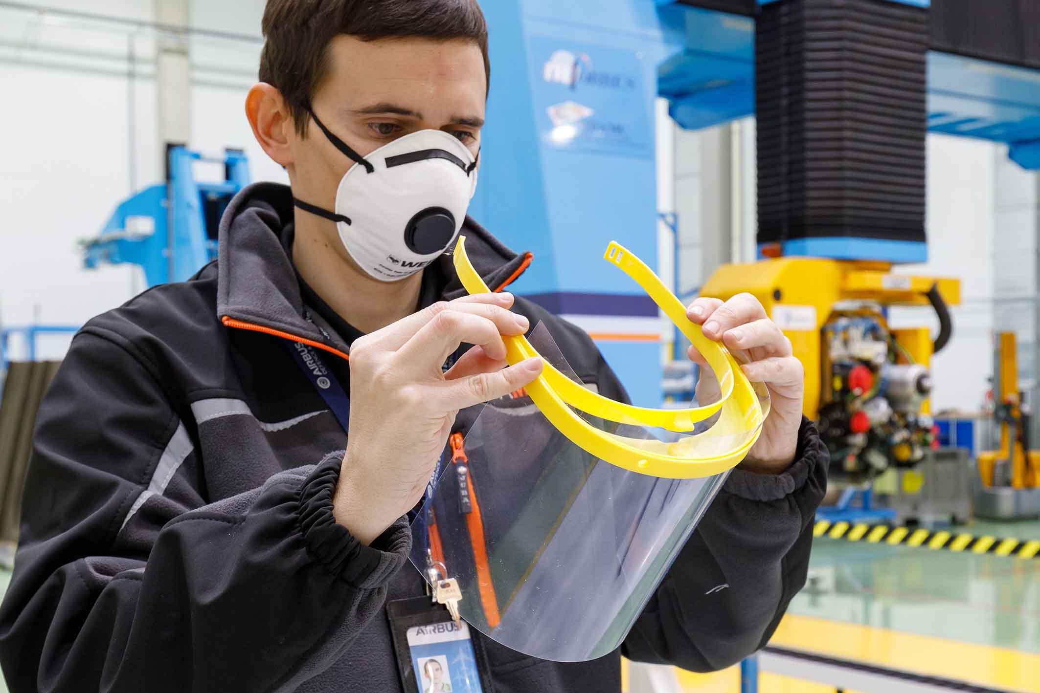 The majority of Airbus sites in Spain have joined forces to produce 3D-printed visor frames, providing healthcare personnel with individual protection equipment in the fight against COVID-19. More than 20 3D printers are working day and night. Hundreds of visors have already been produced and dispatched to hospitals close to the Airbus facilities in Spain. Airbus leverages a patented design to manufacture the visor frames, using PLA plastics.