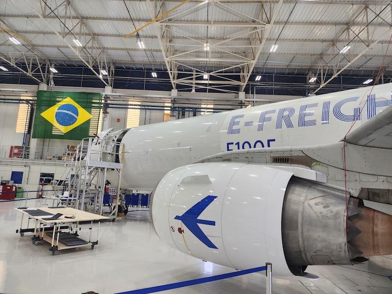 An E190F at Embraer's conversion hangar.