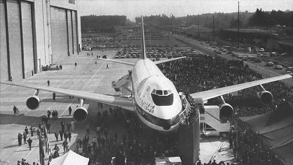 In 1968, Aviation Week & Space Technology published a four-page photo spread of the 747 rollout, along with a glowing editorial about the new jet.