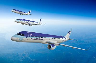 Computer rendering of Embraer 170/175/190 in Estonian Air livery. Courtesy, OV Estonian Air (OV) has ordered three E-175s and one E-190 as it transitions to a fleet of Embraer E-Jets. Delivery is scheduled for the second half of 2014. OV will also take eight additional aircraft—four E-170s and four...