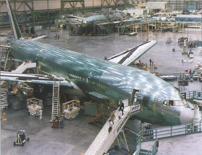 Boeing launched its next-generation twin-jet program, initially called the 777-X. Development slowed due to an industry downturn in the early 2000s.