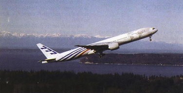 The twin-engine, wide-body 777 was launched by Boeing in October 1990 as the first in a new family of commercial transports designed for the difficult operating environment of the coming twenty-first century. It was kicked off as part of a $22 billion order from United Airlines and was intended to extend the economies of a wide-body twin into new, long-range markets, while utilizing features such as an optional folding wing-tip and quieter engines to help the transport adapt to ever-worsening airport and airway congestion.
