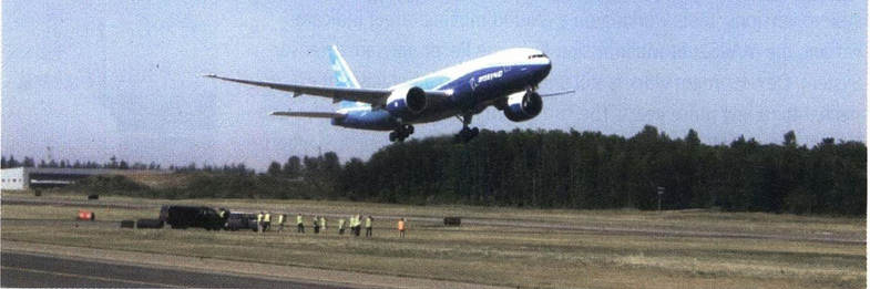 The 777-200LR was the second transport in the 777-X family. It was the flight test program designed to check big wing on standard fuselage. Boeing estimated the -200LR would fly 8,800 naut mi. carrying 301 passengers in a three-class interior, which would make it able to connect most cities in the world. At the time of its flight testing, this was a niche offering, with Boeing only having sold five of the twin-jet engines so far. The main competition was the Airbus A340-500.