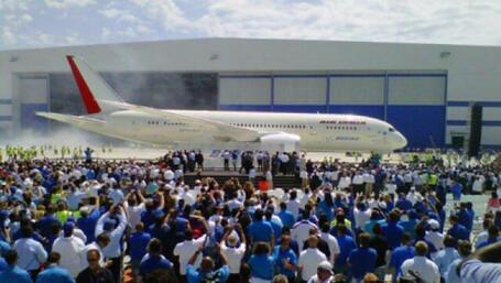Boeing’s North Charleston, S.C. facility rolled out its first 787 Friday. The aircraft is scheduled to be delivered to Air India in mid-year.