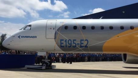 Embraer’s second E-Jet E2 variant, the E195-E2, rolled out March 7, marking the unveiling of the largest jet aircraft ever produced in Brazil.
