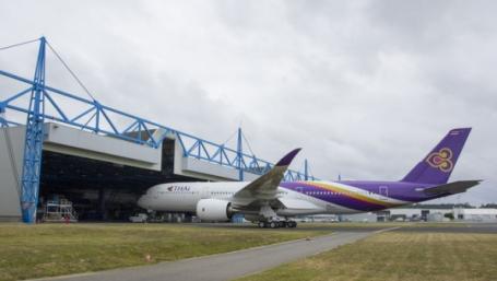 The first A350 XWB for Thai Airways International (THAI) has rolled out from cabin furnishing and engine installation at the Airbus Toulouse Final Assembly Line.
