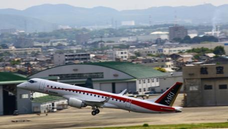 Mitsubishi Aircraft Corp.’s second MRJ flight test aircraft (FTA-2) has completed its first flight from Nagoya Airport in Japan.