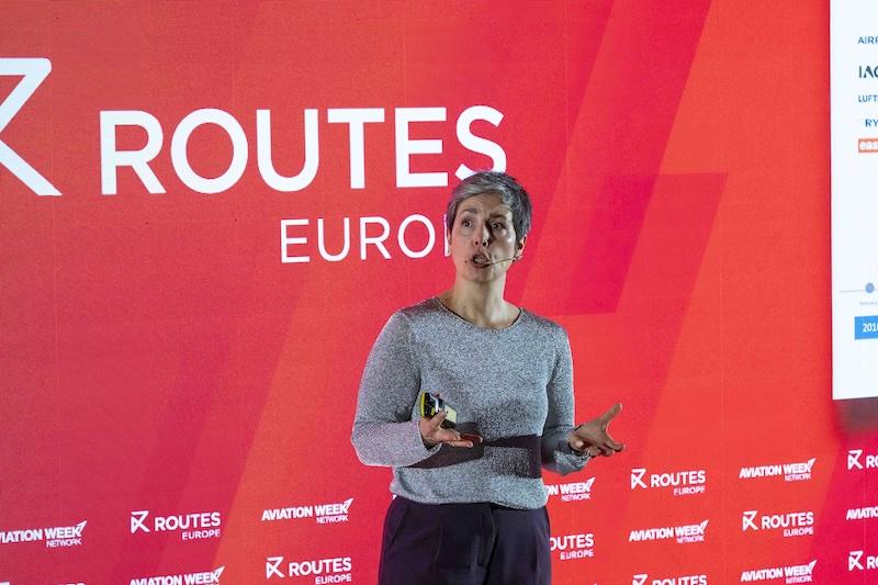 A4E Managing Director Ourania Georgoutsakou on stage at Routes Europe 2025.