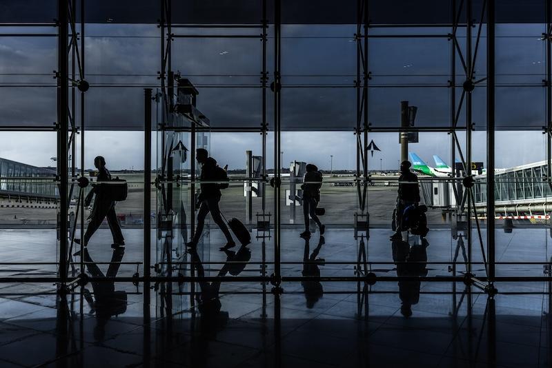 Travelers at Barcelona-El Prat Airport.