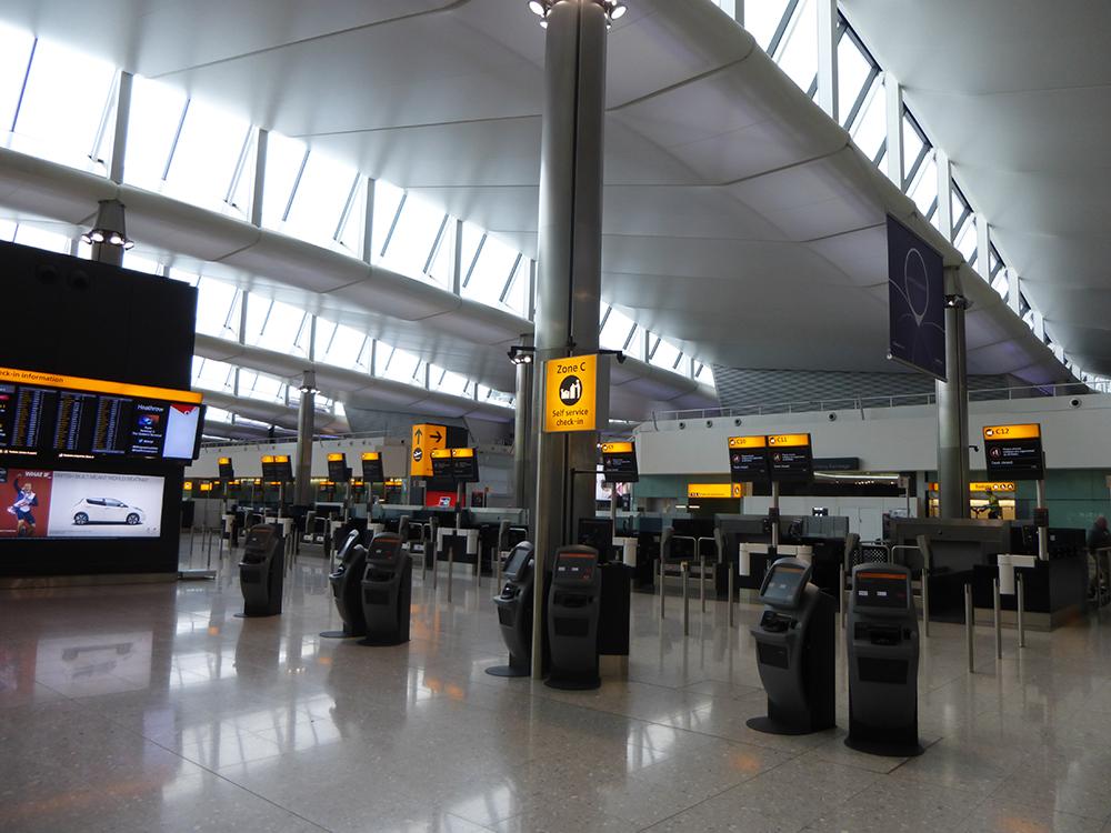 London Heathrow T2 self check-in. ATW Photo by Kurt Hofmann
