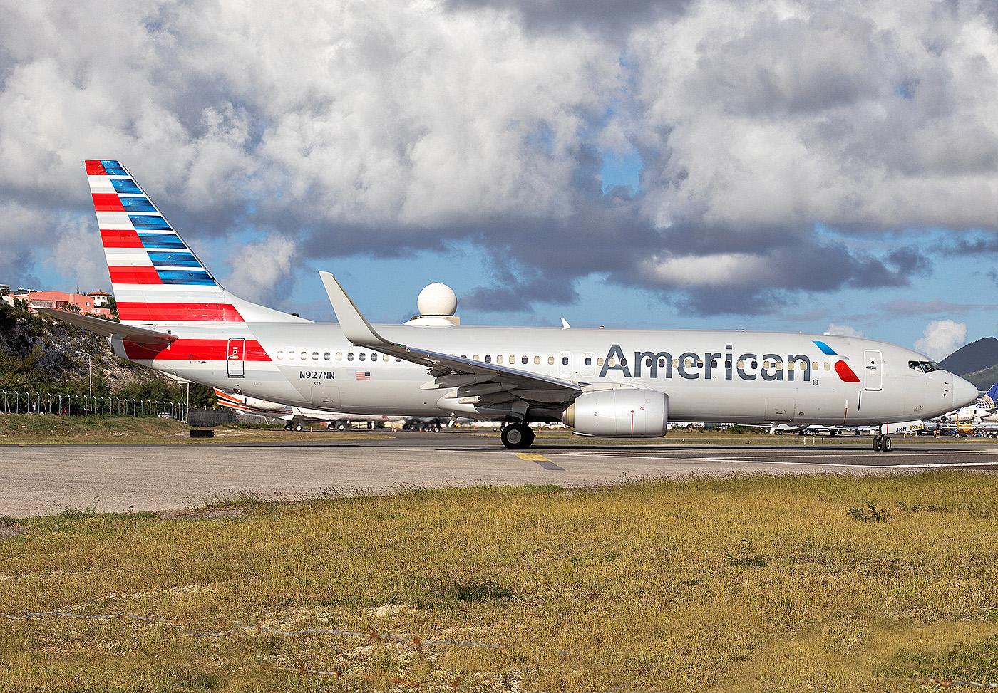 American Airlines Boeing 737-800 taxis for departure to New York JFK International Airport.