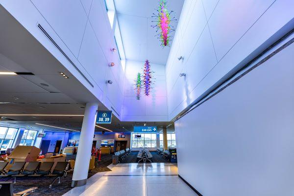 The 34,000-sq. ft. Concourse E Expansion (Gates E 36-45) opened at the end of April 2022 at Charlotte Douglas International Airport (CLT). The $50 million construction project adds one gate to the north end of the concourse and relocates nine existing gates to the new space for operational efficiency and to prepare for jet bridges.