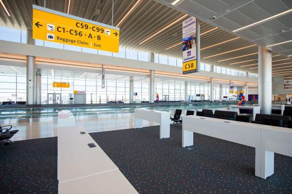 The expansion area includes 16 new gates, 20 holdrooms (passenger waiting areas at gates) and additional airline support areas for a total of 530,000 square feet, which is the largest space commissioned by DEN since the Westin Hotel and Transit Center in 2015. Passenger amenities include an outdoor patio, comfortable seating options, charging stations, new restrooms, nursing rooms, pet relief areas and more.