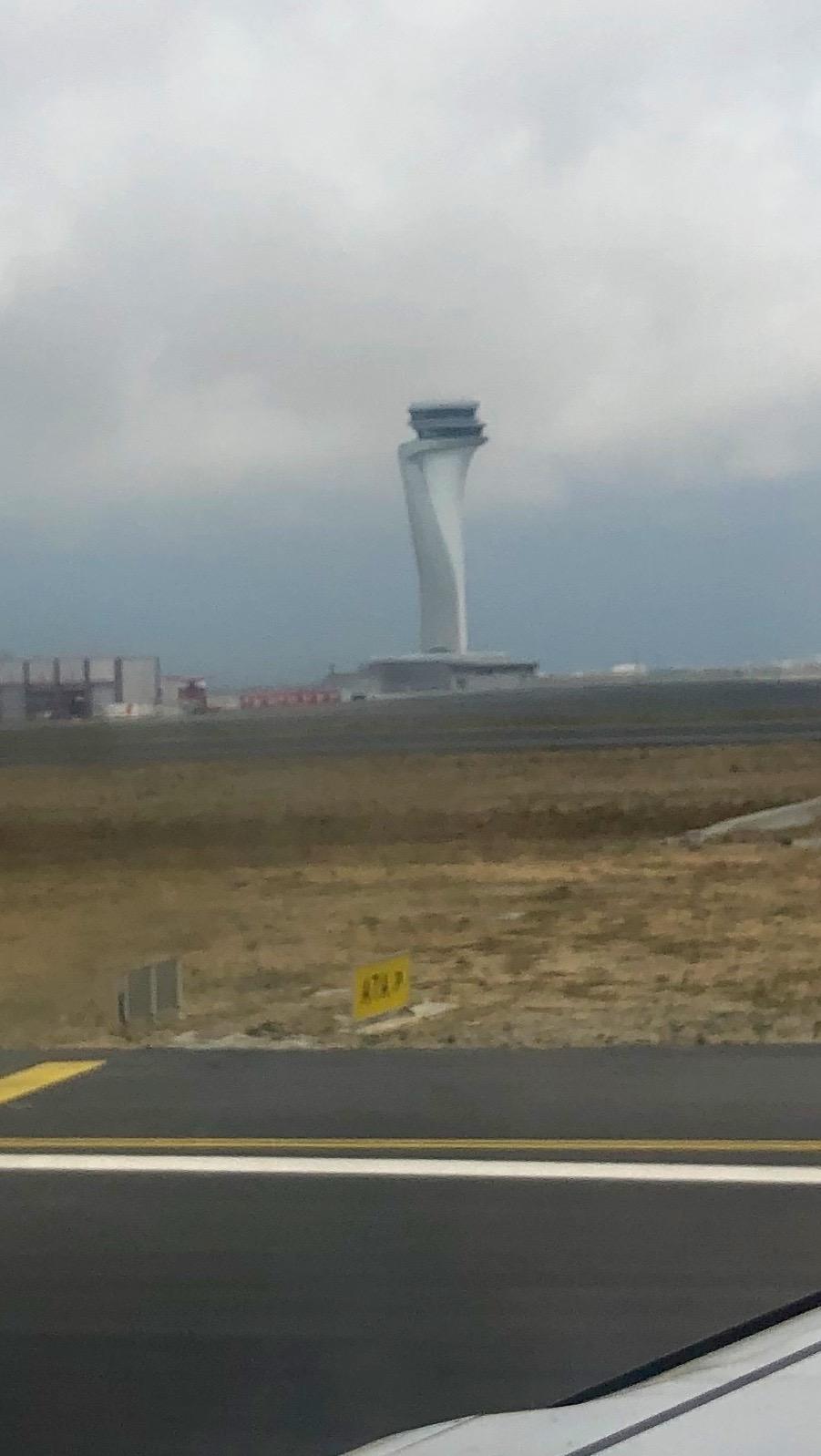 The air traffic control tower is 90 meters high.