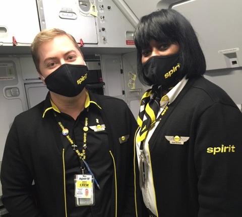 The Spirit Airlines flight attendants gave clear and precise instructions on mask-wearing rules before the aircraft left the gate.