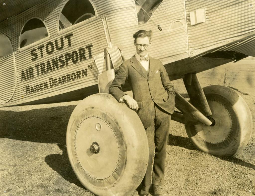 An all-metal design, the Ford Trimotor played a key role in convincing the public that air travel could be safe and practical. Designed by aeronautical engineer William Bushnell Stout, the three-engined aircraft, also known as the Tin Goose, first flew in 1926. Stout also designed the first low-aspect-ratio flying wing aircraft. Flown in 1918, the Stout Batwing became the first early example of a blended wing fuselage in the U.S.