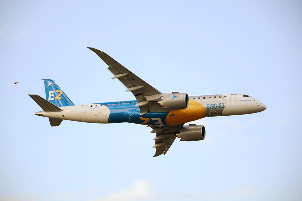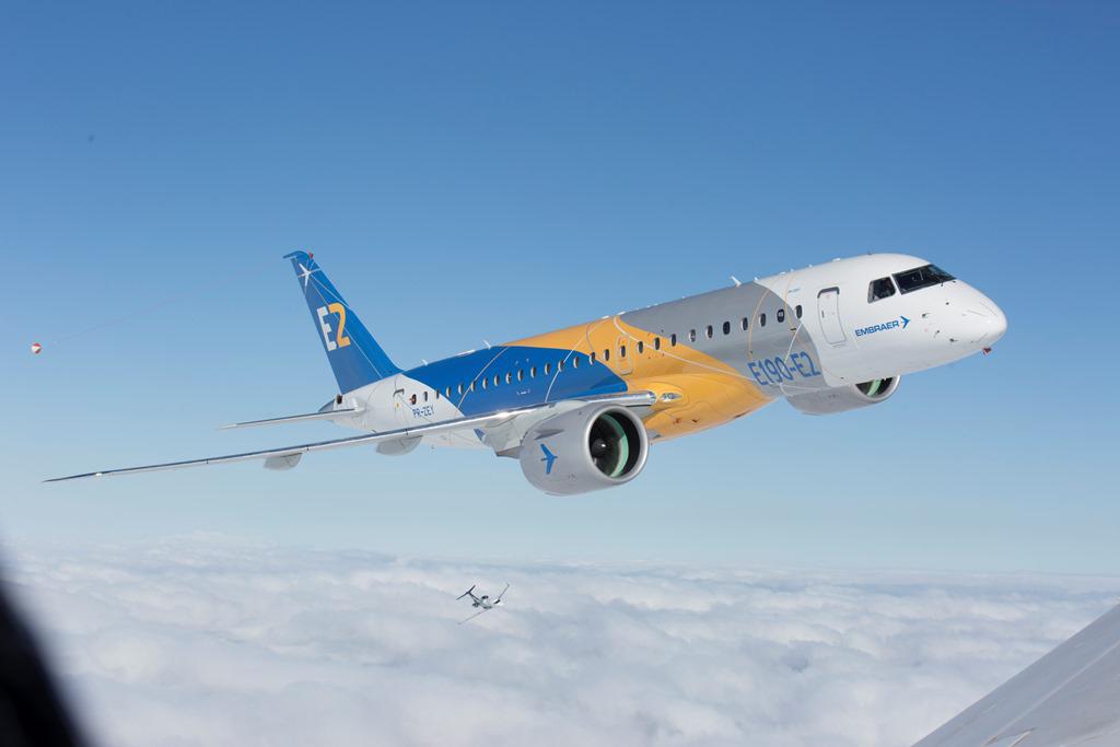 Brazil’s first "big fan" engine airliner, Embraer’s second-generation E190-E2, made a successful first flight from the company’s Sao Jose dos Campos facility on May 23. The 3-hr., 20-min. flight included envelope expansion to 41,000 ft. and maximum Mach and airspeed limits, representing a first for any Embraer maiden flight. Company officials say the busy test flight, and the fact it occurred several weeks ahead of schedule, augur well for on-time development and entry into service in 2018.