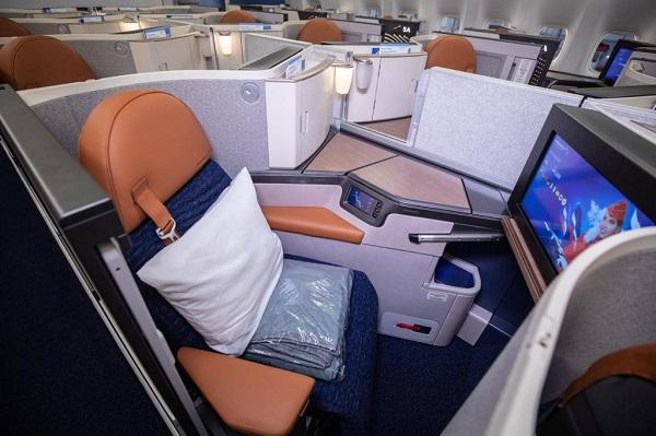 In Business Class, in addition to sliding doors, there is an extra armrest that turns a seat into a private suite fitted with an 18.5-inch HD monitor and 6.5 ft. full-flat bed. All classes are equipped with a Panasonic Ex3 multimedia IFE system. High-speed internet access (up to 30 Мb/sec) is available at an extra charge.