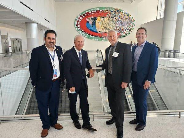On March 30, 2022, STV joined Delta Air Lines and Los Angeles World Airports to celebrate the official opening of the new central headhouse connecting Terminals 2 and 3 at Los Angeles International Airport (LAX). The ribbon-cutting ceremony marked the completion of phase 1 of the Delta Sky Way at LAX program. STV, in joint venture with Satterfield & Pontikes Construction, is performing program and project management, baggage handling system management, scheduling, financial controls, change and contracts management, and tenant move management services for the program: a $2+ billion initiative that will enhance terminals 2 and 3 of LAX ahead of the 2028 Olympic and Paralympic Games in Los Angeles. Pictured, from left: STV project director Bruno Piana, Satterfield & Pontikes construction president clay morel and EVP Frank Roetzel, STV SVP and national aviation practice lead Joe Thompson.