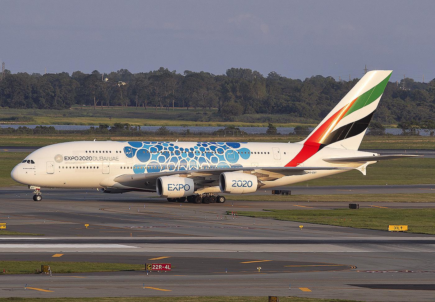 Emirates Airline has a long tradition of showcasing special liveries on its Airbus A380 and Boeing 777 fleet, and in the last five years alone, close to 50 unique designs and 100 liveries have been brought to life by the team at the airline. Emirates on Sept. 28, 2021 rolled out a Dubai Expo 2020 livery on an A380. This bright blue aircraft livery features large-scale graphics in vivid green, orange, pink, purple and red, which run across the fuselage and all the way up to the tail and fin interlaced with the distinct ring-shaped Expo 2020 Dubai logo. Special “Dubai Expo” and “Be Part of the Magic” messages run across both sides of the A380 fuselage. The engine cowls also carry the Expo 2020 Dubai messages and new dates of the event, which was postponed due to the COVID-19 pandemic. Expo 2020 Dubai is the first World Expo ever hosted in the Middle East, Africa and South Asia (MEASA) region, and will run from October 2021 to March 2022.