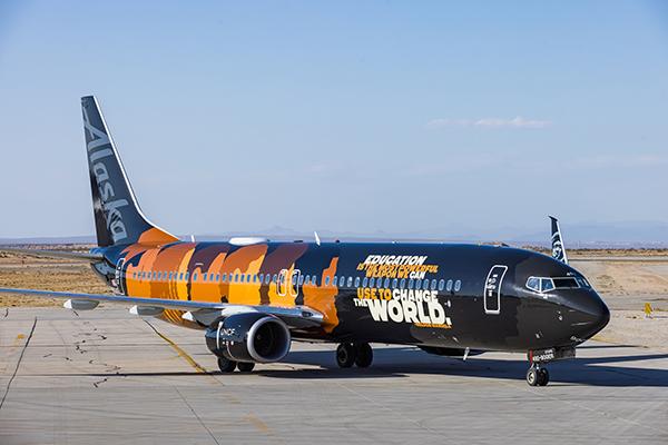 Alaska Airlines launched a new livery symbolizing a commitment racial equity in education on a Boeing 737-900ER in April 2021though the company’s long-standing partnership with UNCF, an organization dedicated to enabling underrepresented students to become highly qualified college graduates. The aircraft features profiles of the next generation of leaders, the children, grandchildren and mentees of Alaska’s employees. The “Our Commitment” aircraft will fly throughout Alaska's network, to spread the word about UNCF and spark conversation around the importance of education, equity and representation.