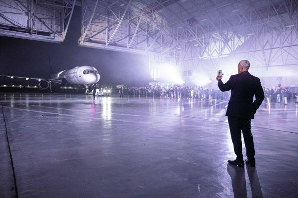 The new livery reveal on a Boeing 757-200 on Jan. 18, in San Bernardino, California, at the Certified Aviation Services hangar.