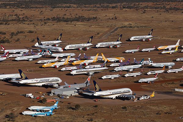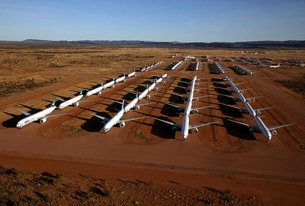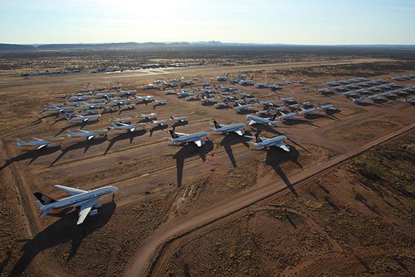 As ATW-Aviation Week photographer Rob Finlayson flew over the facility in a helicopter recently, he described seeing so many stowed aircraft as an “eerie sight.”