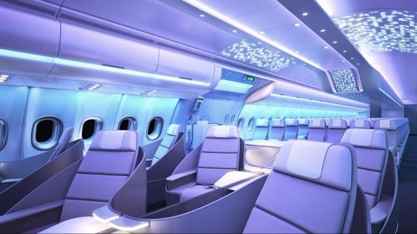 Airbus is preparing for introduction of the Airspace cabin on the A330neo and is refining the design on the A320neo. Both variants of the cabin are being touted as continuing the A350's passenger experience. The first two A330neos for TAP Air Portugal, fitted with the Airspace cabin, are “painted...