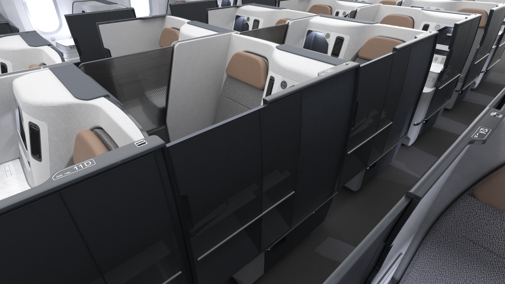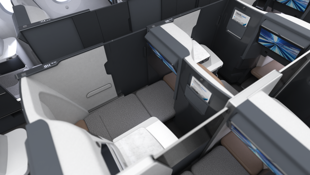 Jamco Corporation has unveiled the new “Quest for Elegance” seat, a new business class seat concept that it says “meets the demand for an inventive, spacious seat for high density business class interior cabins without compromising comfort.” The Quest seat features an angled tilt monitor and an industrial design that Jamco says is “focused on providing an elegant premium hotel in the sky while maintaining competitive density.” Jamco expects to have the Quest ready for installation in 2024 or early 2025.