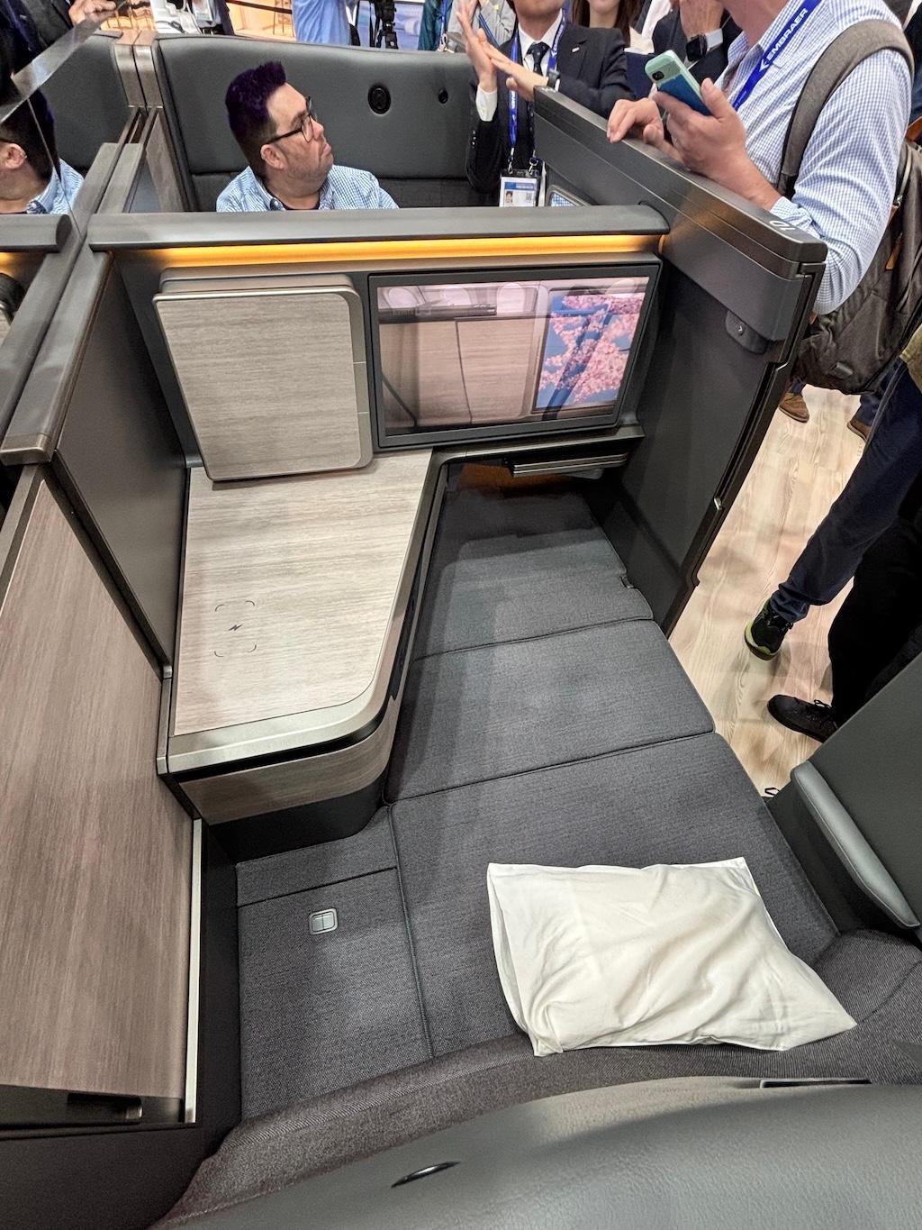 Features include thinner privacy doors and walls to deliver what Safran Seats described as contributing to a significant reduction in seat weight; a 24 in. IFE screen that is 1.4 times larger than existing units on ANA’s 787s, plus USB-A and -C wireless charging and Bluetooth audio connectivity.