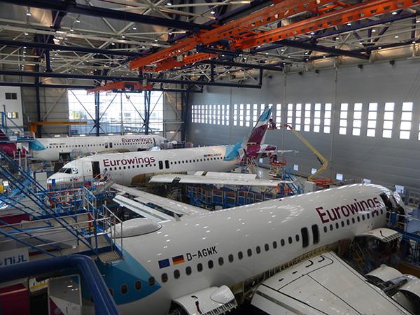 A look inside the new hangar, three Eurowings Airbus A319/320s undergoes maintenance work.
