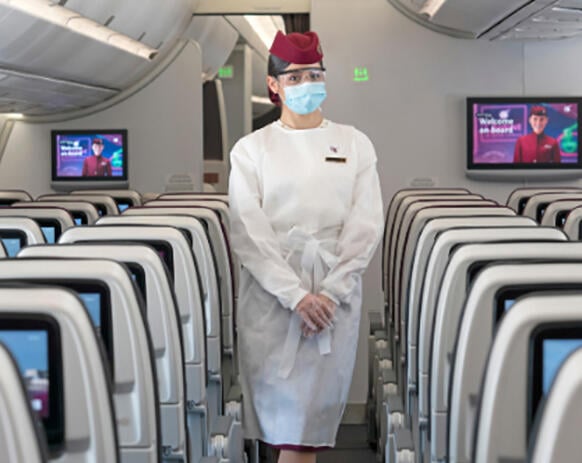The Doha-based airline has enhanced its health and safety measures onboard by introducing new personal protective equipment (PPE) for cabin crew and face shields for customers.
