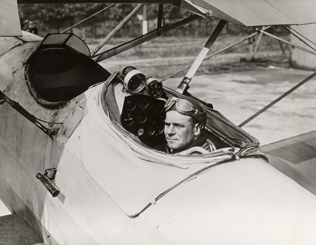 With support from the Guggenheim foundation, the Sperry and Kollsman companies and others, Jimmy Doolittle—the leading engineer/test pilot of his day—made the first “blind” flight, from takeoff to landing, at Mitchel Field on Long Island in September 1929. The rear cockpit of the Consolidated NY-2 trainer was fitted with specially developed instruments—including an artificial horizon, radio beacons and an altimeter updated by radio—and a fabric hood (folded down in the photo). A safety pilot occupied the front seat.