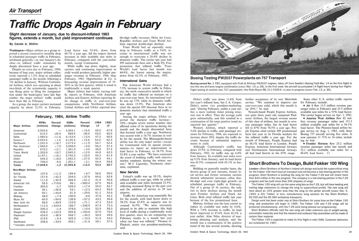 Major airlines as a group reported a second consecutive monthly drop in scheduled passenger traffic in February, attributed generally-as was January's decline-to inflated traffic stimulated by deeply discounted fares a year ago.