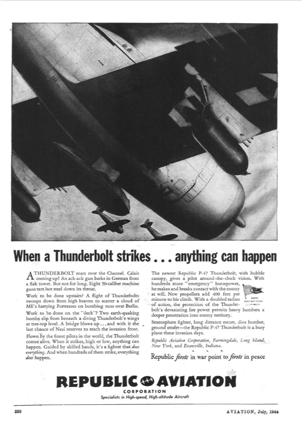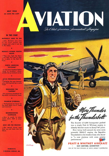 July 18, 2024Coming weeks after the Allied D-Day landing at Normandy, our July 1944 edition included dozens of advertisements for military aircraft products, including the cover, which featured a pitch for Pratt & Whitney's new R-2800C engine, which powered the U.S. Army's Republic P-47 "Thunderbolt" high-altitude fighter.