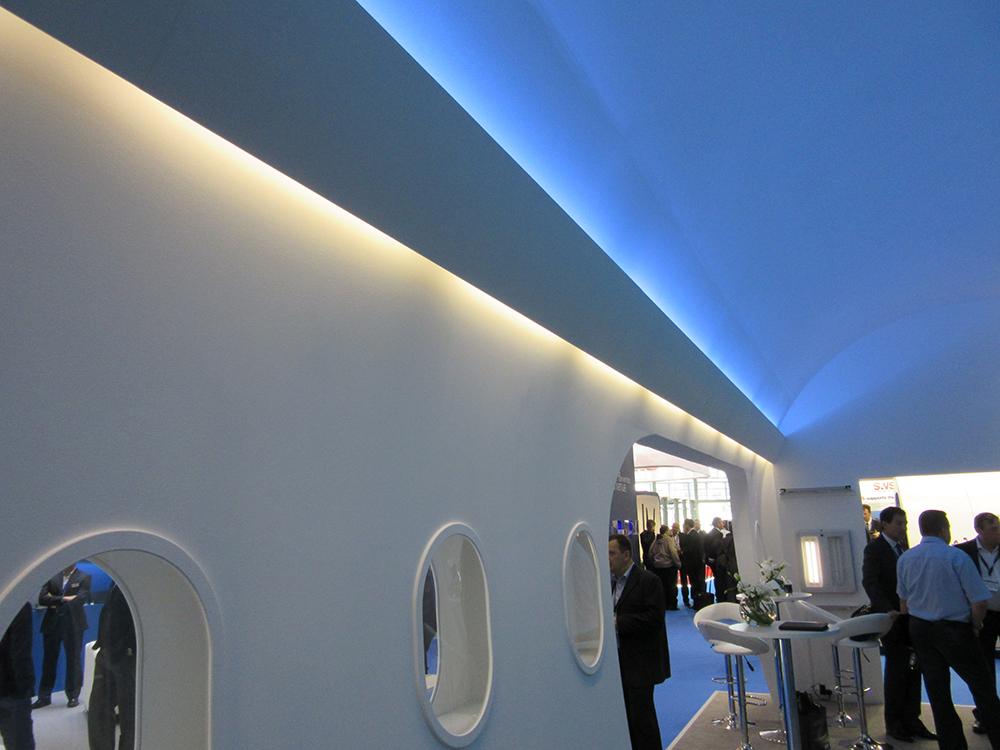 STG Aerospace displayed its retrofit cabin mood lighting system, which can be installed within six hours on a Boeing 737NG or 757 without any new wiring or connectors needed. Thomson Airways, Arkefly, Dreamjet and Copa Airlines have purchased the system. By Karen Walker