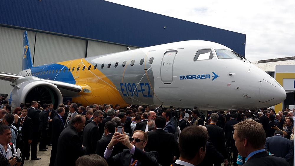 Embraer has rolled out its first next-generation E-Jet, an E190-E2, at its headquarters in São José dos Campos, Brazil. The E190-E2’s first flight is slated for the second half of 2016 with first deliveries expected to take place in 2018. The E2s are exclusively powered by Pratt & Whitney PW1900G geared turbofan engines.