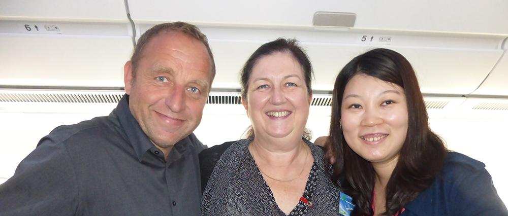 CEO Pekka Vauramo gives a dedicated menu card to the passengers.